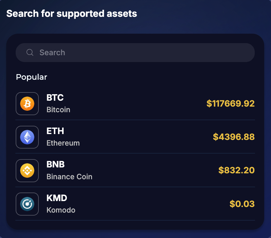 Your private keys, your crypto. Komodo Wallet ensures you maintain complete control over your digital assets at all times.